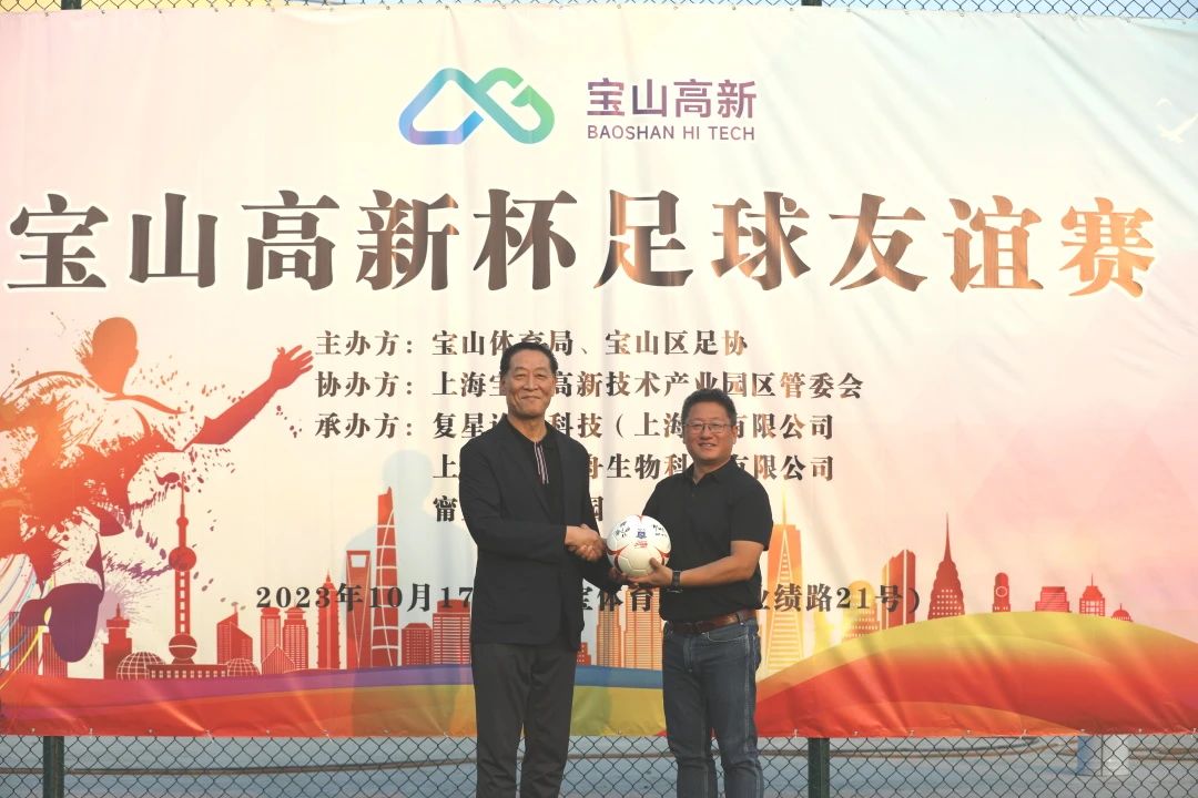 出席本次活动的领导嘉宾有上海市足球协会主席、上海市足球协会副主席、宝山区足球协会会长、上海宝山高新区管委会副主任、前国足著名球员,上海汉氏方舟生物科技有限公司作为本次赛事的主赞助方,总经理韩之海先生与副总经理杨女士共同出席了本次活动。